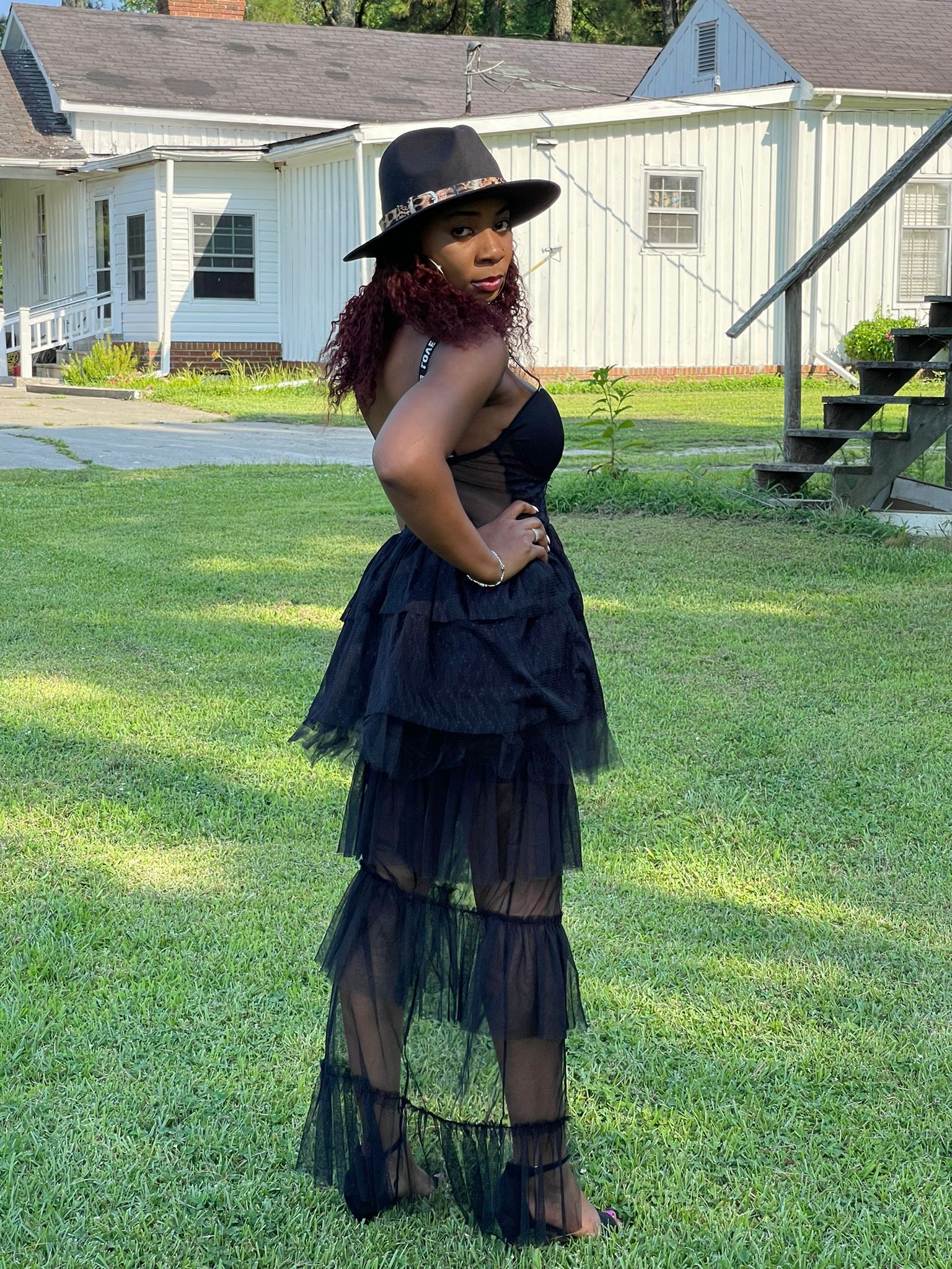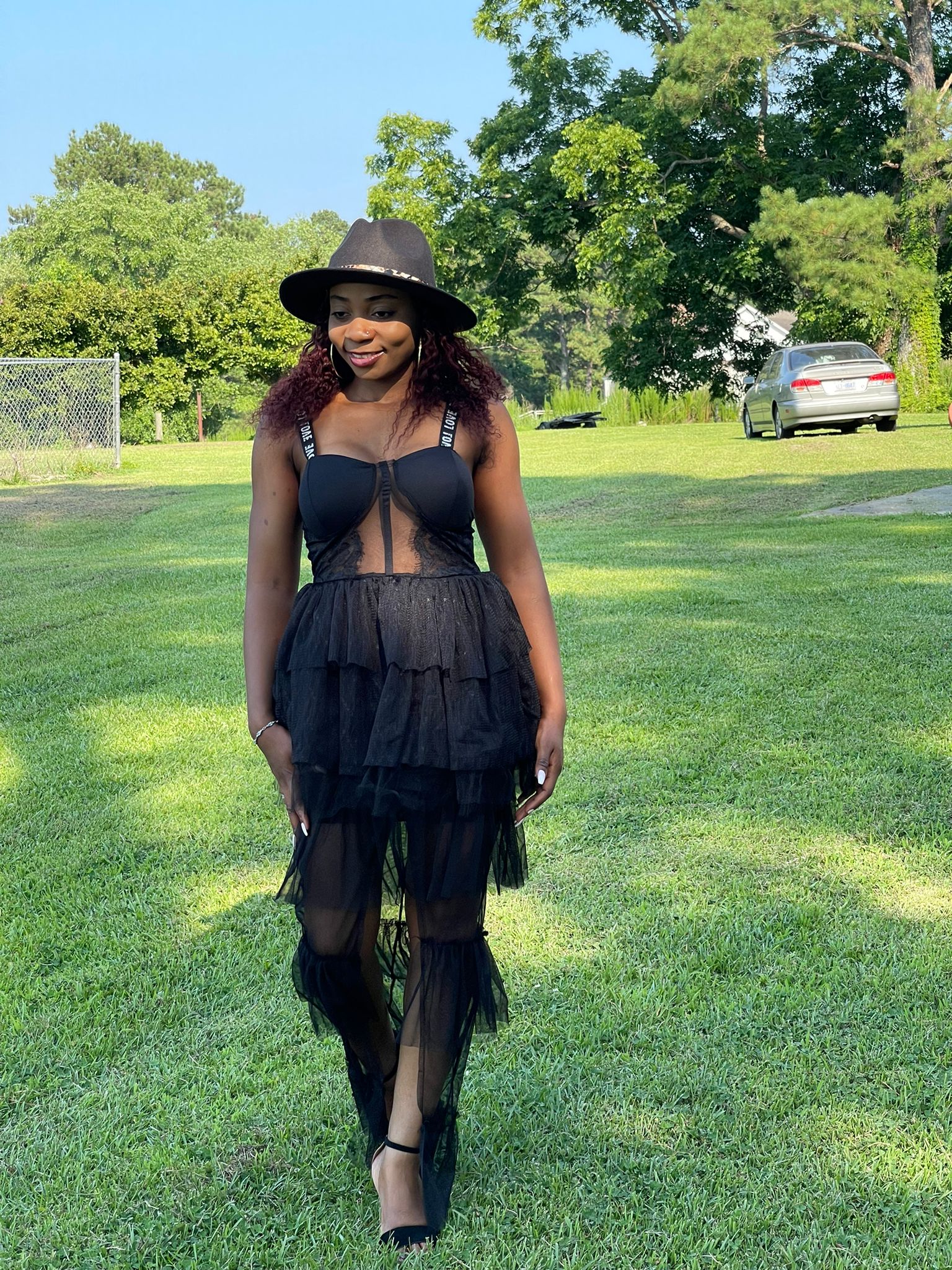 Black Dress Women Elegant Lace Stitching High Waist Black Long-Sleeved