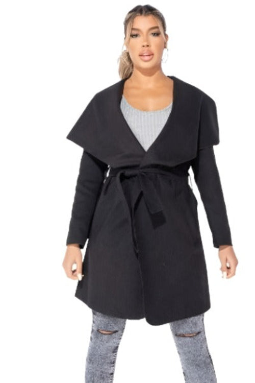 MID LENGTH OVERSIZED BELTED WATERFALL COAT